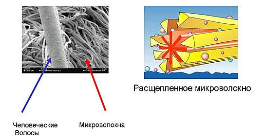 Производство микрофибры - сложный и высокоточный процесс, ведь в результате должна получиться нить диаметром в одну десятую или даже в сотые доли миллиметра. В последнее время производство сконцентрировано на изготовлении двойной нити, когда полиэфирные и полиамидные волокна разделены между собой и образуют большую площадь микроотверстий, что повышает впитывающую способность материала. При соприкосновении с каплями воды полотенце из микрофибры моментально впитывает влагу, при чем в 40 раз превосходит возможности изделий из натуральных тканей.