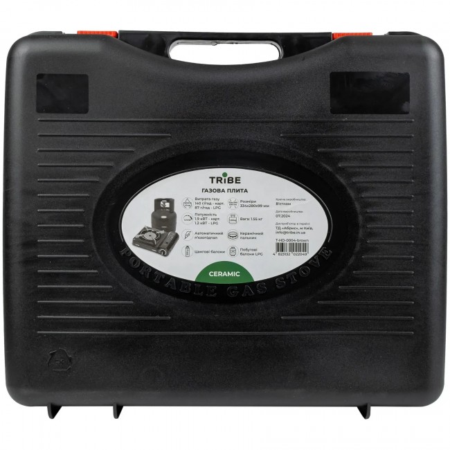 - Комплектация: Газовая плита Tribe Ceramic, пластиковый кейс для транспортировки и переходник на бытовой баллон.