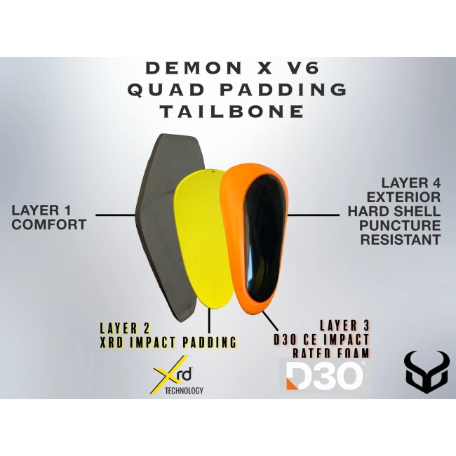 Благодаря трем интегрированным накладкам D3O®, включая улучшенную защиту копчика T6, а также системе Quad Padding System от Demon с дополнительным ударным слоем XRD®, V6 предлагает отличную деформацию и поглощение ударов. Мягкая пенопластовая подкладка на бедрах, бедрах и сиденье максимизирует комфорт, не прибавляя объема.